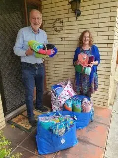 ‘This year 120 children’s blankets, 71 pram blankets, 3 single blankets (plus 173 beanies, 20 scarves, mittens, slippers and more!) were passed on to Puddle Jumpers. Amazing effort the group.’ Thanks Jill, Rose, Judy, Chris, Karen, Robyn, Anna, Nulla, Wendy, and Co.
