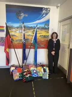 Last year, Kym from Roma Mitchell School engaged a project that had their students (with the help of teachers and parents), learn to knit and crochet and produce their own squares! This year, Meredith did a great job joining the blankets. They are pictured in the second row.