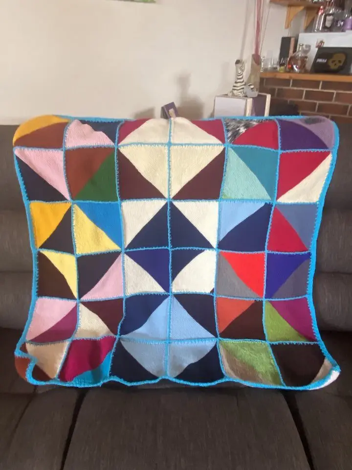 ‘Who would have thought that we would still be joining,after six years,keeps us busy when watching the tv,and hoping that someone has benefited,from the blankets’ Pat and Janet😀