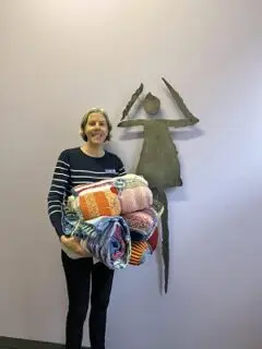 Blanket ties: We know many also produce their own, thank you. Then there are those who donate a heap with their square drop off. Then there are people like Sarah and Kathy who make heaps and keep us going.